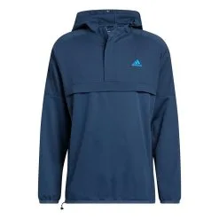 The forecast calls for blustery weather, but your tee time is set. Play through cool, breezy rounds in this adidas golf pullover. The hybrid knit-woven construction is made for lightweight warmth and protection against the wind. Front welt pockets keep hands warm between shots. Cinch the drawcord hem and pull up the hood for extra coverage.