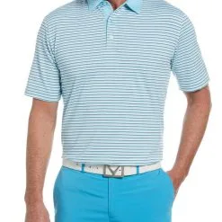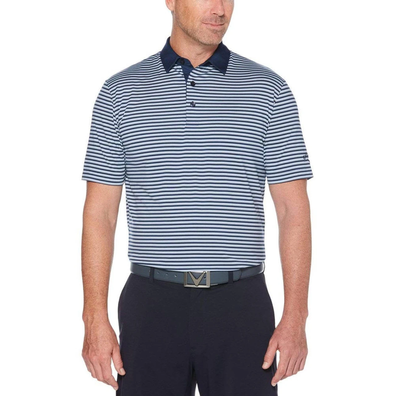 Full-Motion Stretch The Callaway 3-Color Stripe Polo is designed with single-knit fabrication and built-in full-motion stretch engineered for golf.