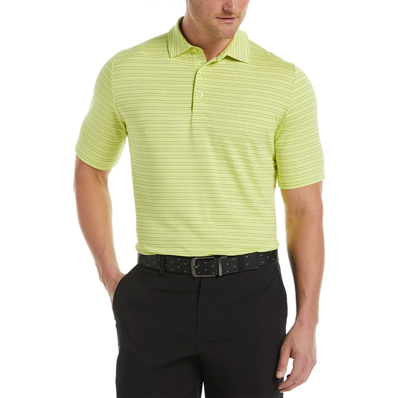 Keep your cool on the course in this Callaway men’s golf shirt. Opti Dri™ moisture wicking technology built into our men’s golf shirts pulls sweat away from the body for on-course comfort throughout your round. Designed for effortless movement with every shot, this performance golf polo is equipped with Swing Tech™ for added stretch in the shoulder seams for a full range of motion. The versatile fine line print and classic three-button placket, are sure to make this one of your go-to golf tops.