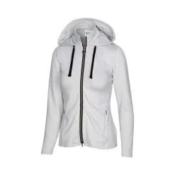 The Greg Norman Women’s Sofia Jacket is a cozy outerwear piece designed for those chilly tee times out on the golf course. A comfort stretch construction ensures you maintain full range of motion with longer lasting comfort. The front zip mock neck, drawstring hood and high-low hem cut are designed to protect you from unfavorable weather.